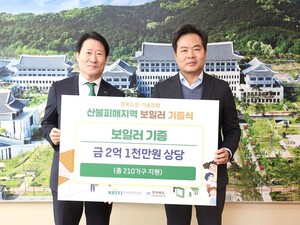 [한국농정신문 김수나 기자]한국환경산업기술원(기술원)이 경북 산불피해 지역 주민에게 가정용 보일러를 기부했다. 경상북도와 기술원은 지난 19일 산불피해 주민들의 빠른 일상 복귀를 위해 희망하는 210가구에 가정용 보일러를 전달하는 기증식을 열었다. 이번 기증으로 영덕 197가구, 안동 10가구, 의성 3가구에 모두 2억1000만원 상당(1대당 100만원)의 보일러가 지원된다. 보일러는 올해 초 대형 산불피해를 본 지역의 주택 부분 소실 가구 가운데 설치를 희망하는 가구에 제공한다. 지원되는 보일러는 대기오염물질을 적게 배출하고, 열