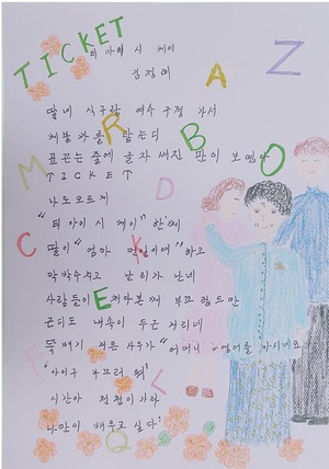 딸네 식구랑 여수 구경 가서케불카를 탔는디표 끈는 줄에 글자 써진 판이 보였다TICKET나도 모르게“티 아이 시 케이” 한께딸이 “엄마 먼 일이여”하고막 박수치고 난리가 난네사람들이 쳐다본께 부끄럽드만근디도 내속이 두근거리네뚝배기 거튼 사우가 “어머니 영어를 아시네요”‘아이구 부끄러워’시간아 천천히 가라나 많이 배우고 싶다 삶의 애환이 담긴 농민들의 손편지, 그림, 시 등 소소하지만 감동있는 작품을 ‘한글꽃이 피었습니다’에서 소개합니다. 게재를 원하는 농민이나 관련단체는 신문사 전자우편(kplnews@hanmail.net)으로 연락
