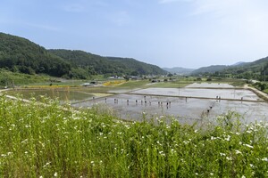 충북 괴산의 관광명소인 문광저수지 둑길을 걷다 보면 너른 들판에 그려진 아름다운 논그림을 볼 수 있다. 해마다 다른 주제를 가진 도안으로 모내기를 하는데, 이게 쉬운 일이 아니다. 먼저 기다란 빨대를 논바닥에 꽂아서 라인 작업을 하고 거기에 색을 맞춰 모를 심은 다음 다시 빨대를 걷어내는 작업을 해야 한다. 2008년에 처음 시작한 유색벼 논그림은 17년째 이어오고 있는데, 2023년부터는 괴산 4H 청년들이 이 일을 맡아서 하고 있다.아침부터 뜨거운 해가 내리쬐는 논바닥에 20여명의 청년들이 모였다. 모두 종이 한 장씩을 들고 도