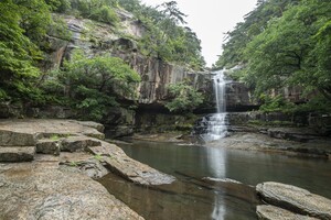 충북 괴산에서 밤새 비가 쏟아지고 난 아침에는 수옥폭포로 가야 하는 이유가 세 가지 있다. 많은 비로 불어난 폭포수가 장관을 이루며 떨어지는 모습을 볼 수 있고, 폭포에서 떨어져 계곡으로 흘러가며 공기까지 가득 채운 물소리를 들을 수 있다. 그리고 무엇보다 물기를 머금어 채도가 높아진 초록은 이곳을 비현실의 공간으로 착각하게 만든다.그렇다고 내 최종 목적지가 수옥폭포는 아니다. 수옥폭포를 바라보며 옆으로 난 나무 계단을 따라 하늘을 바라보면서 오른다. 그리고 이내 사방에 초록 병풍을 두른 저수지와 맞닥트린다. 때마침 깊고 고요한 물