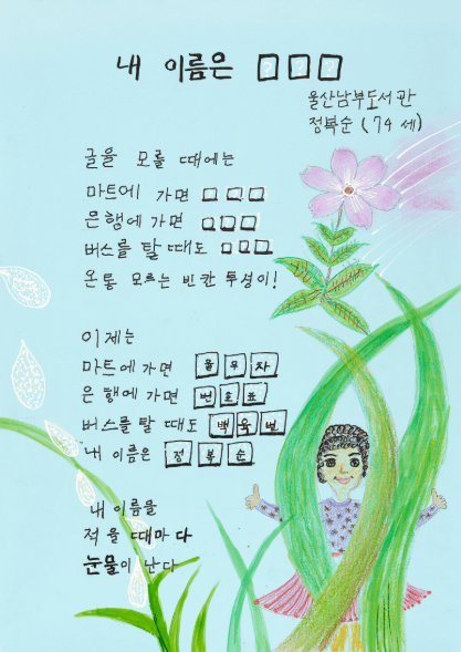 삶의 애환이 담긴 농민들의 손편지, 그림, 시 등 소소하지만 감동있는 작품을 ‘한글꽃이 피었습니다’에서 소개합니다. 게재를 원하는 농민이나 관련단체는 신문사 전자우편(kplnews@hanmail.net)으로 연락주시기 바랍니다.