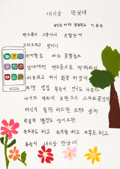 삶의 애환이 담긴 농민들의 손편지, 그림, 시 등 소소하지만 감동있는 작품을 ‘한글꽃이 피었습니다’에서 소개합니다. 게재를 원하는 농민이나 관련단체는 신문사 전자우편(kplnews@hanmail.net)으로 연락주시기 바랍니다.