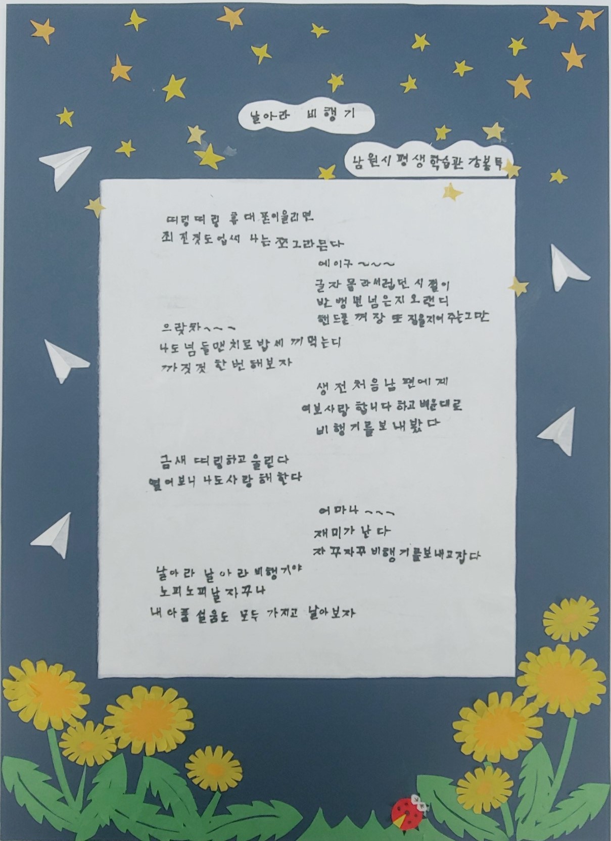 삶의 애환이 담긴 농민들의 손편지, 그림, 시 등 소소하지만 감동있는 작품을 ‘한글꽃이 피었습니다’에서 소개합니다. 게재를 원하는 농민이나 관련단체는 신문사 전자우편(kplnews@hanmail.net)으로 연락주시기 바랍니다.