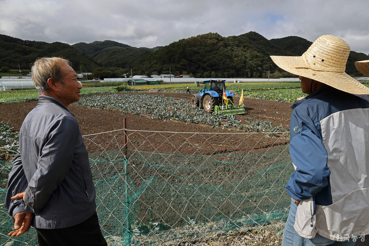 같은 지역에서 7000평 규모로 배추를 재배하고 있는 양성근(73)씨도 “배추 농사만 50년 넘게 지었는데 이런 피해는 처음”이라며 “방제도 평년의 두 배인 8번씩이나 했는데도 무름병 확산을 막을 수 없었고, 수확해봤자 자잿값도 건질 수 없어 이렇게 갈아엎게 됐다”고 설명했다.